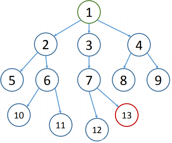 - 用迭代加深算法按顺序写其访问和扩展的节点,目标节点为 13。